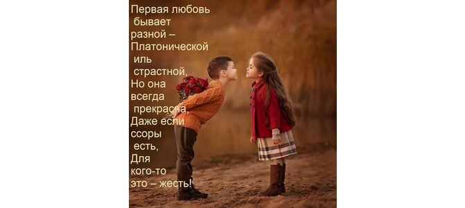 Открытка "Первая любовь бывает разной – Платонической иль страстной, Но она всегда прекрасна, Даже если ссоры"
