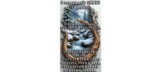 С первым днём зимы! 01 декабря. Первый день зимы - как чистый лист бумаги, укрытый пушистым снегом. Пусть эта зима станет временем новых идей, тихих размышлений и смелых планов.
