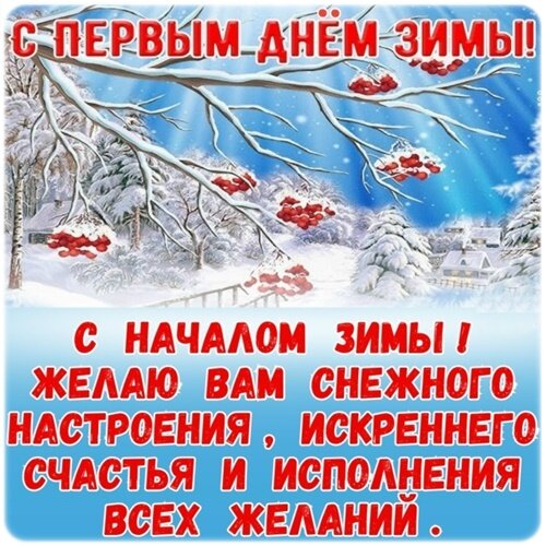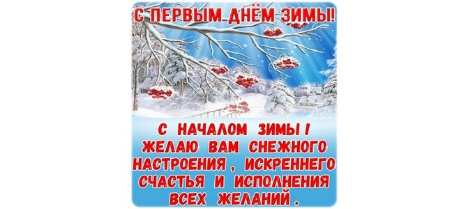 С первым днем зимы! С началом зимы! Желаю вам снежного настроения, искреннего счастья и исполнения всех желаний.