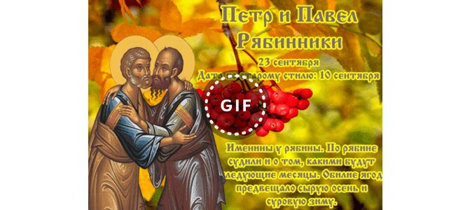 Петр и Павел Рябинники 23 сентября. Дата по старому стилю: 10 сентября. Именины у рябины. По рябине судили и о том, какими будут следующие месяцы. Обилие ягод предвещало сырую осень и суровую зиму.