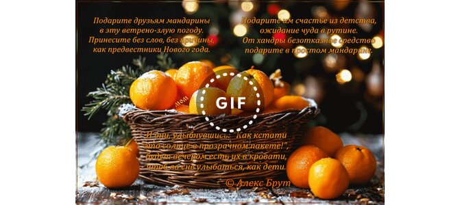 Анимированная открытка "Подарите друзьям мандарины в эту ветрено-злую погоду. Принесите без слов, без причины, как предвестн"