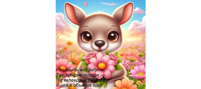 Открытка "Позабыты все заботы, трудобудни позади — на календаре суббота, к ней в объятия иди!"