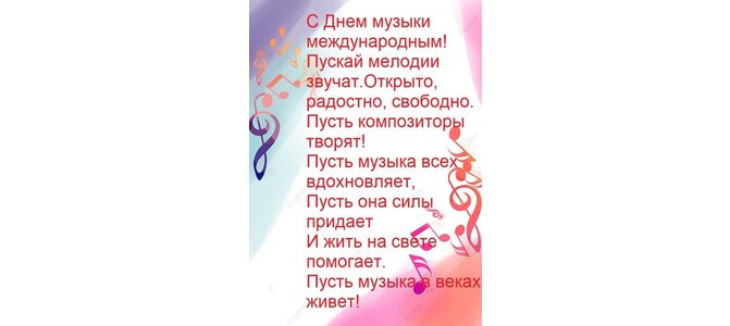 Открытка "С днем музыки международным! Пускай мелодии звучат открыто, радостно, свободно. "