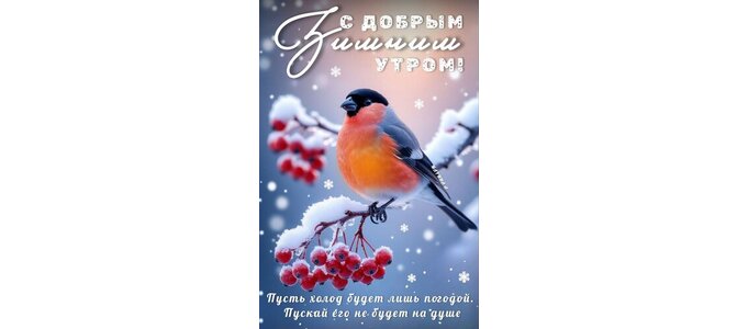 Открытка "С ДОБРЫМ ЗИМНИМ УТРОМ! ПУСТЬ ХОЛОД БУДЕТ ЛИШЬ ПОГОДОЙ. ПУСКАЙ ЕГО НЕ БУДЕТ НА ДУШЕ"