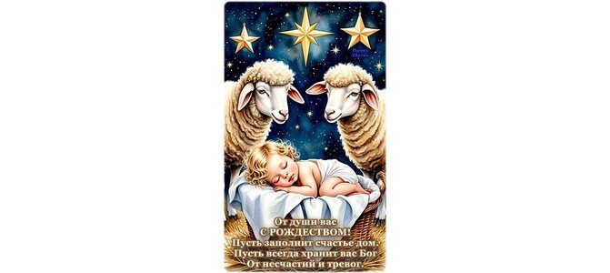 От души вас с Рождеством! Пусть заполнит счастье дом, пусть всегда хранит вас Бог от несчастий и тревог.