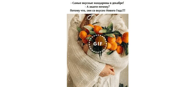 Анимированная открытка "- Самые вкусные мандарины в декабре! - А знаете почему? Потому что они со вкусом Нового года!"