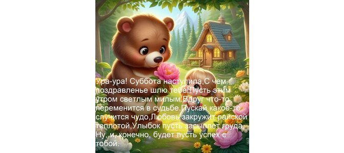 Открытка "Ура-ура! Суббота наступила, С чем поздравленье шлю тебе! Пусть этим утром светлым милым Вдруг что-то"