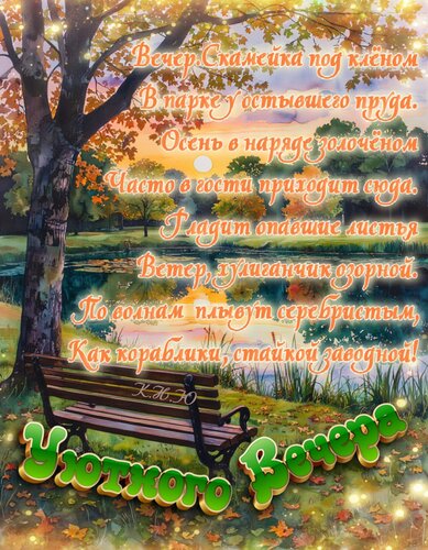 Теги:уютноговечера, осень, парк, вечер, осенний пруд, стихмой