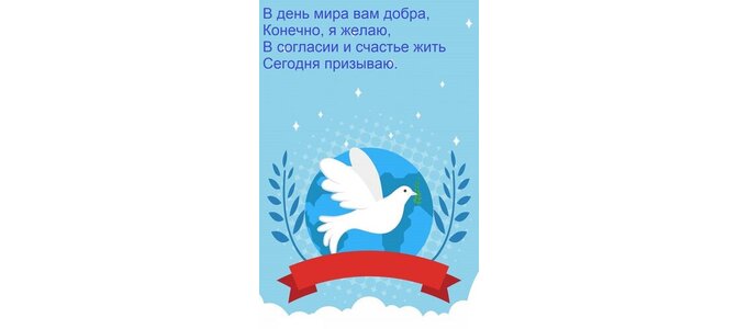 Открытка "В день мира вам добра, конечно, я желаю, в согласии и счастье жить сегодня призываю."