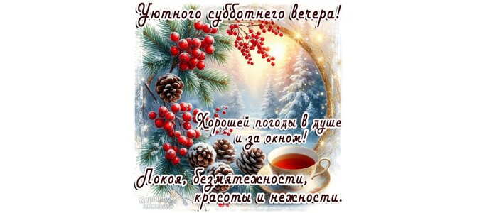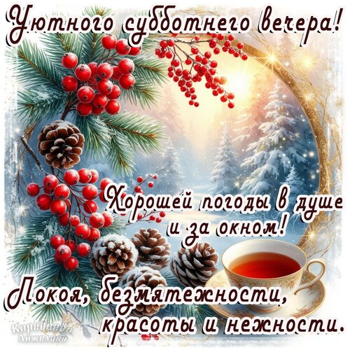 Теги:вечер субботы, суббота, вечер, снег, зима, поздняя осень, пожелания на каждый день, ягоды, чай, чашка чая