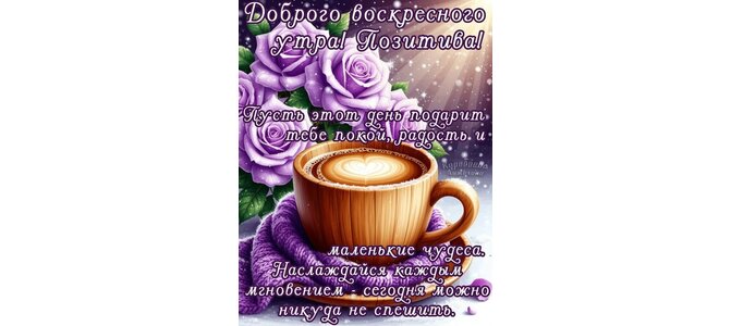 Доброго воскресного утра! Позитива! Пусть этот день подарит тебе покой, радость и маленькие чудеса наслаждайся каждым мгновением - сегодня можно никуда не спешить.