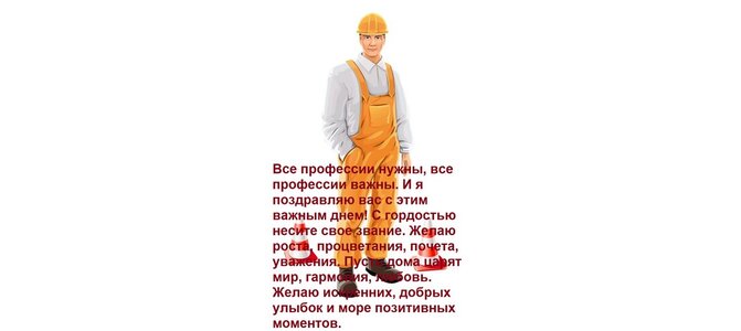 Теги:все профессии нужны, все профессии важны и я поздравляю вас с этим важным днем с гордостью несите свое звание желаю роста, процветания, почета, уважения пусть дома царят мир, гармония, любовь желаю искренних, добрых улыбок и море позитивных моментов
