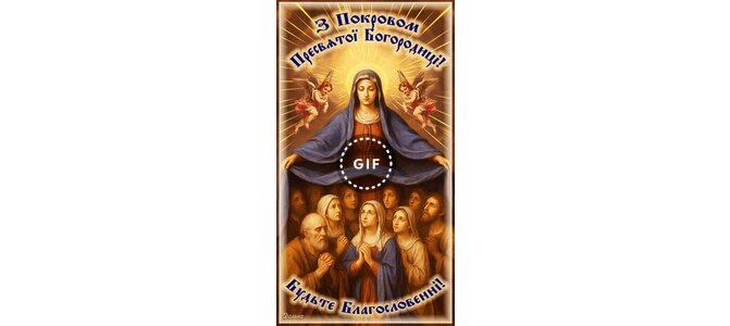 Анимированная открытка "З ПОКРОВОМ ПРЕСВЯТОЇ БОГОРОДИЦІ!"